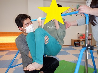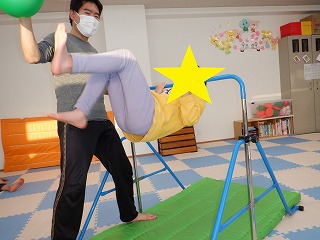 鉄棒から手を離さずに足を上に上げることが出来ました✨