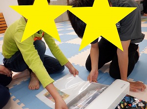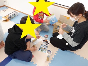 午後からのお楽しみ会で使う射的の的も自分達で作りました。