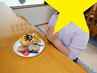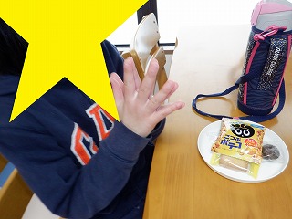 手洗いをして運動遊びに備えてエネルギー補給です。