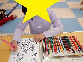 自由遊びの時間では、塗り絵やおままごとで遊びました。