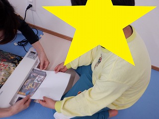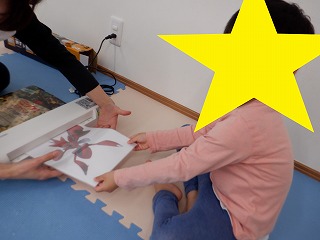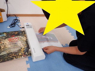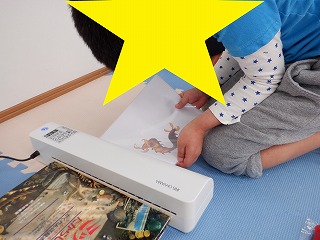 好きなキャラクターのイラストを印刷してもらい、ラミネート加工に挑戦。