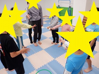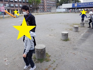 鬼役の先生が振り向いたら、ピタッと止まりましょう。