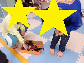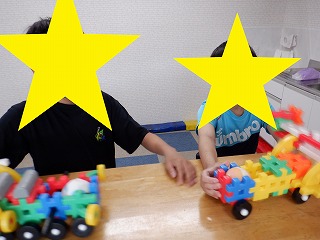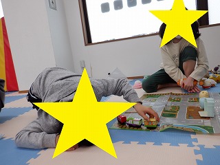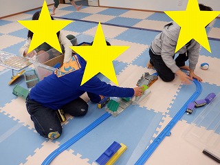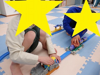 午後の自由遊びは、プラレールやぬいぐるみやニューブロックで遊びました。