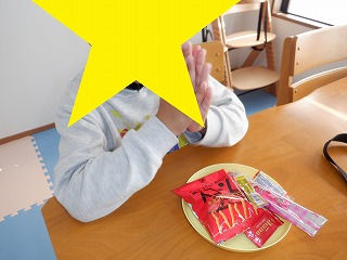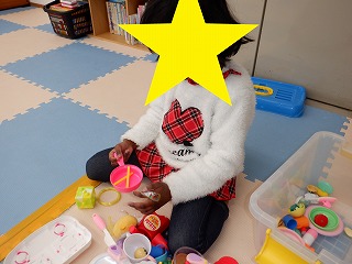 自由遊びでは、おままごとをして遊びました。美味しい料理を作ってくれてありがとう♪