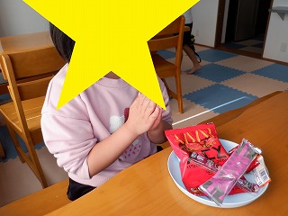 手洗いをして運動遊びに備えてエネルギー補給です。