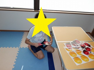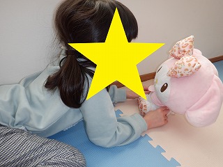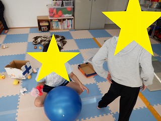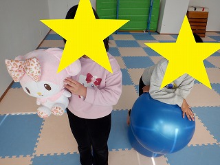 自由遊びは、ペーパークラフト・バランスボール・ぬいぐるみなどで遊びました。