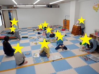 身支度を整えてからはお勉強や自由遊びの時間を始めました。