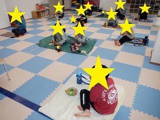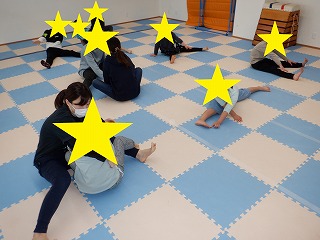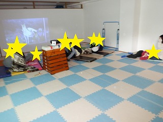 水分補給をして床に寝転び、数字を数えながらリラックスタイムを取りました。