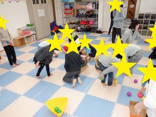 「だるまさんがころんだ」をしながら、ボール集めをします。