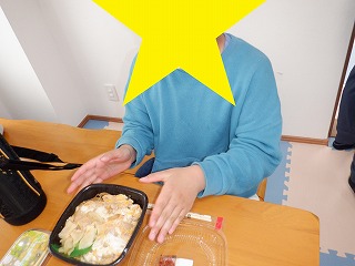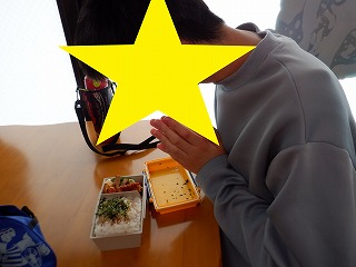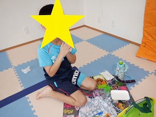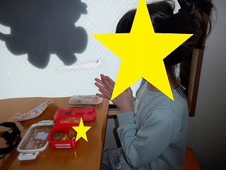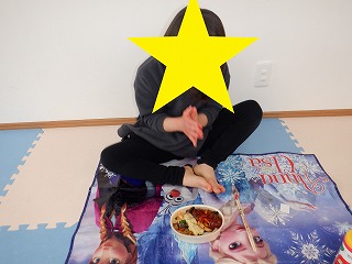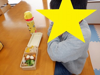 自分でレジャーシートの準備や机を拭くお手伝いをしてくれました。いただきます。