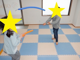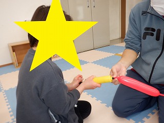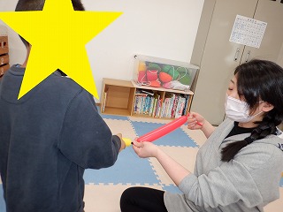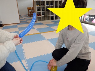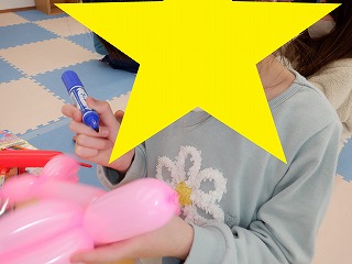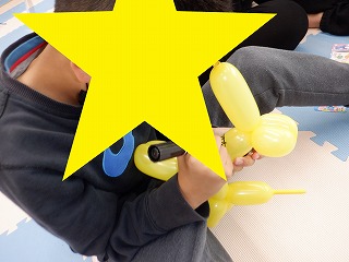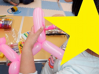 バルーンアートでは、空気を入れて風船をねじるのにも挑戦していました。