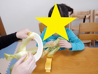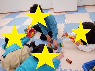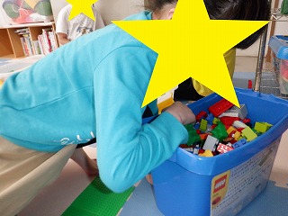 自由遊びの時間では、ニューブロックや写し絵、工作などにも取り組みました。