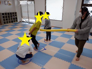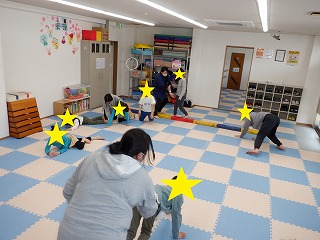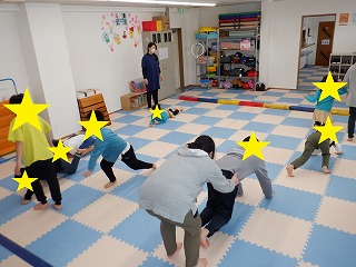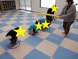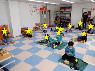 柔軟を一生懸命に取り組み、運動遊びの準備が整いました!