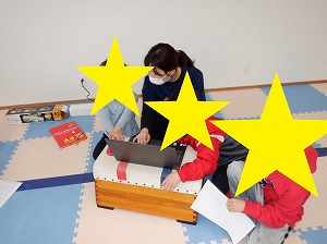 射的で使う的を自分達でラミネート加工をして作りました!