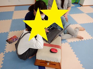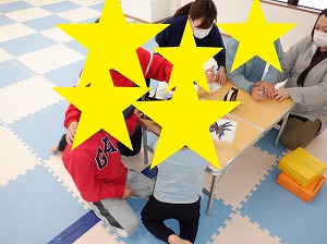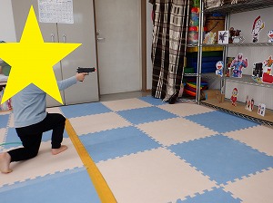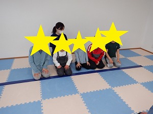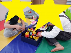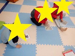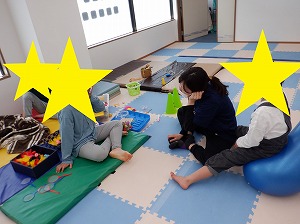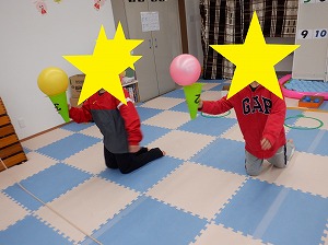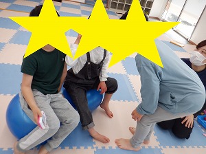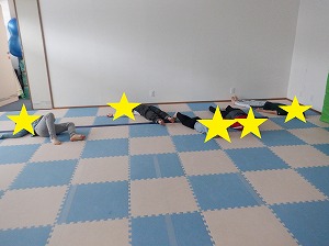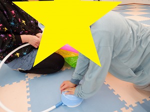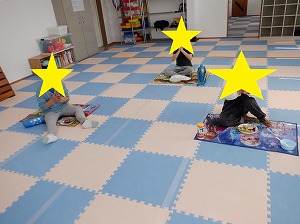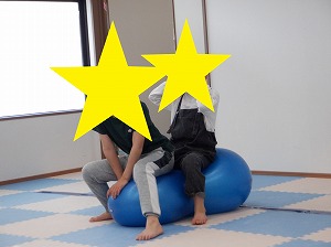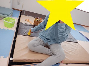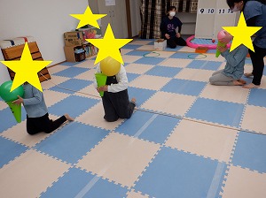 午後はマットでお家を作って家族ごっこをしたり、バランスボールに乗って遊びました(^_-)-☆