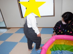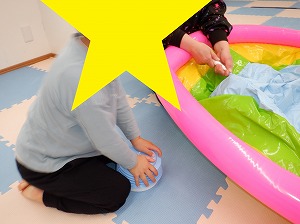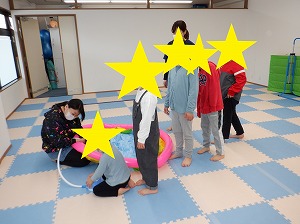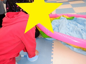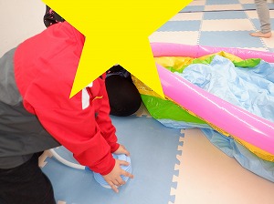 運動遊びで使うプールを順番に膨らませてくれました(^^)/