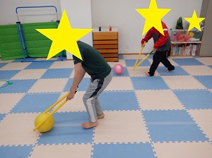棒でボール転がし☆