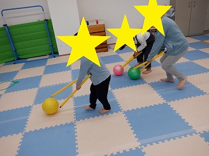 棒でボール転がし