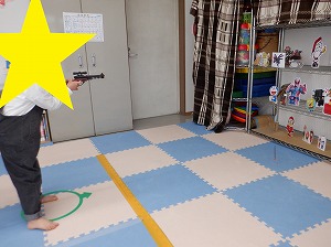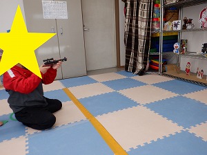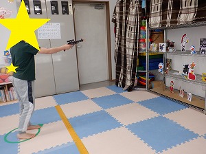 自分達で作った射的の的を準備して射的を行いました❣