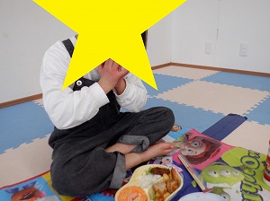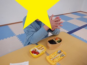 個別に黙食をします。「いただきまぁす♡」