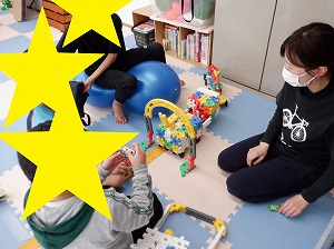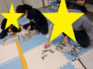 自由遊びの時間では、パズルをしたりバランスボールに乗って遊びました❣