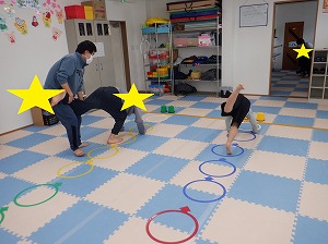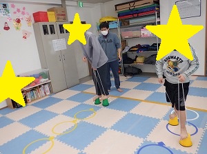 ケンケンクマさんでは、フープの中から出ないように進んでいきます。