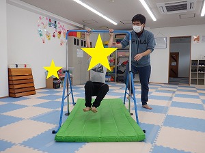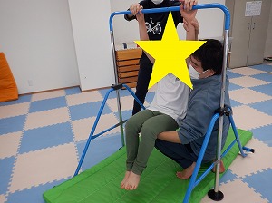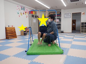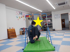 鉄棒をしっかりと持って鉄棒にぶら下がります❣
