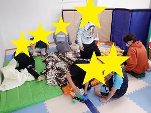 最初は狭かったお家もお友達や先生も入れるほどの大きなお家が出来ました。