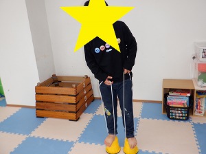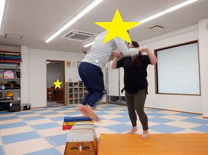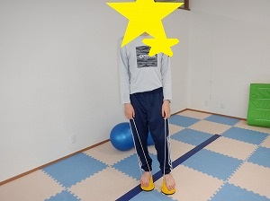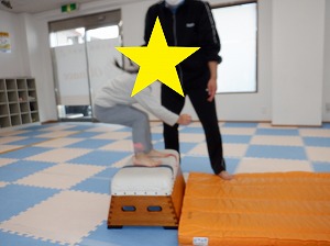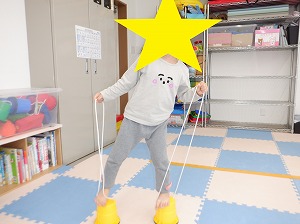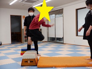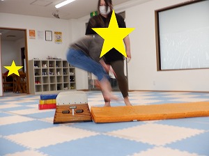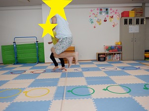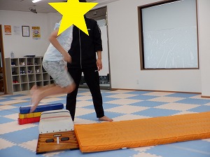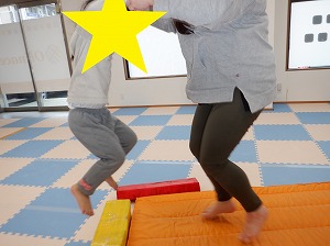 平均台を両足で越えるていきます。