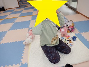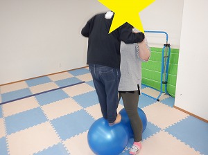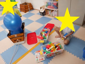 自由遊びの時間では、バランスボールで遊んだりマックの定員さんに変身して