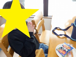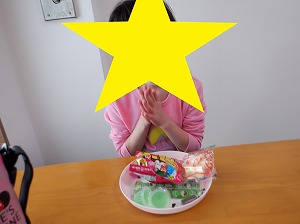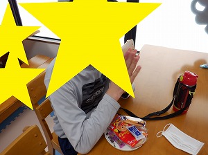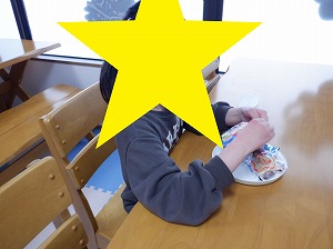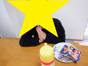 個別に黙食をします。「いただきまぁす♡」