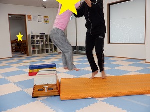 跳び箱を両足揃えてジャンプで越えて行きます。