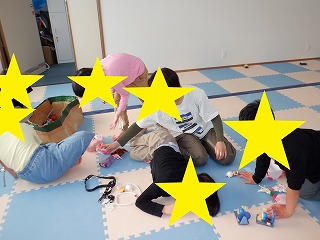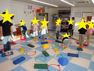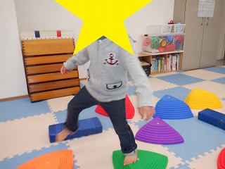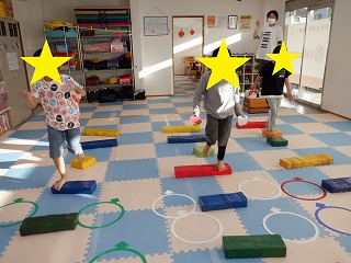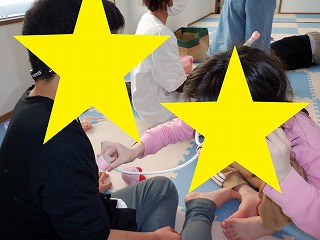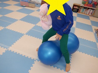 自由遊びでは、バランスボールに乗ったり、お医者さんごっこ等をしてお友達と楽しく遊びました♪