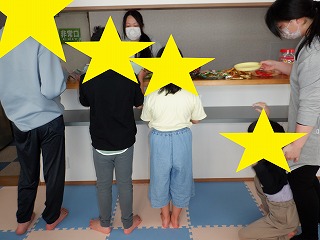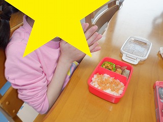 手洗いうがい、消毒をして昼食のお弁当にしましょう。