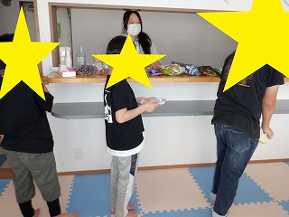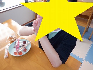 沢山動いたので糖分が必要ですね!お買い物ごっこで好きなお菓子を選びました♪