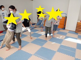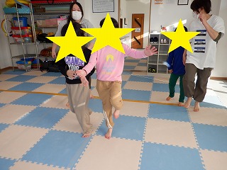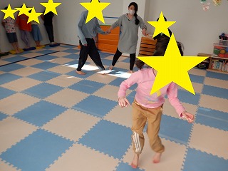 横歩きでステップを踏んだり、手叩きスキップではスキップしながら太ももの下で手を叩きます。