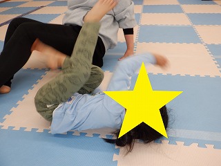 クモさん渡りでは、うつぶせの状態で両手足で体を支え、腰を上げながら進みます。