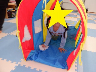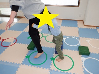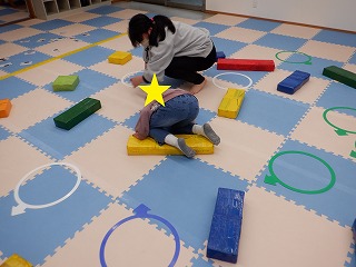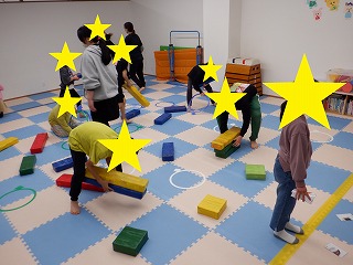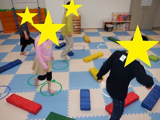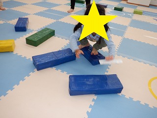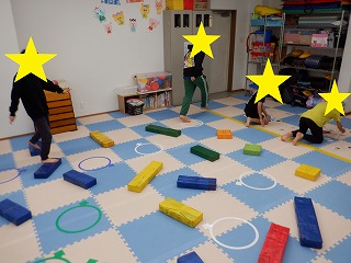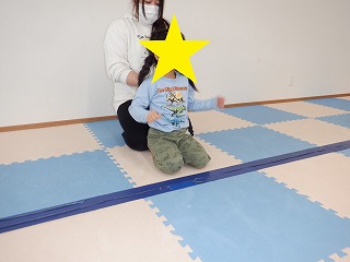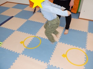 コースを変えて、ジャンプをしたり平均台の上を渡ったりもしました。運動の準備とお片付けを手伝ってくれました。ありがとう。