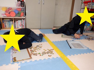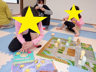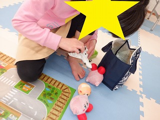 自由遊びはぬいぐるみ、バランスボール、ジグソーパズル、工作等で遊びました。