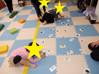 支持力、バランス感覚、腹筋力を養います。準備とお片付けのお手伝いをしてくれました。ありがとう。