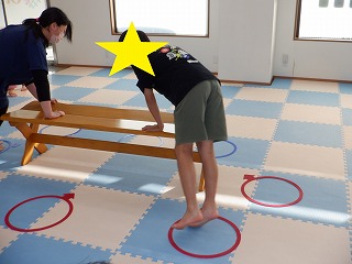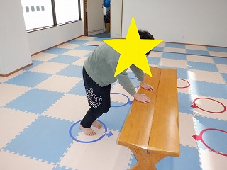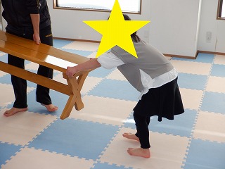 椅子に手を付き両足ジャンプで横に進んでいきます。