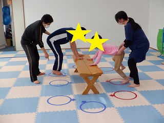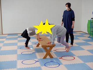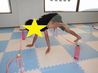クマさんで縄を越えていきます。足や手が当たらないように慎重に進む事が出来ました✨