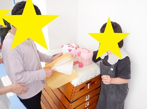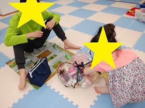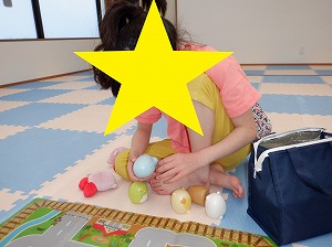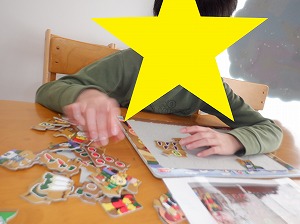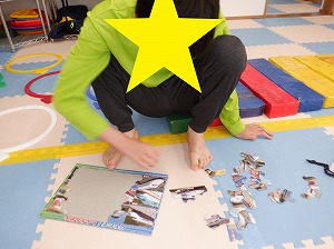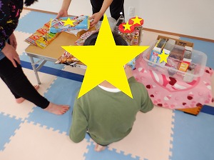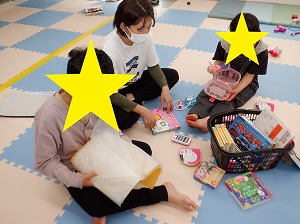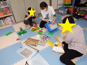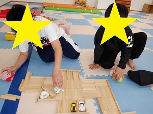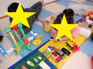 自由遊びの時間では、ミニカーを並べてお店屋さんごっこやパズルなどで遊びました。