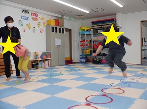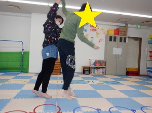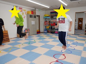 お友達や職員から跳ぶタイミングを声で教えてもらうと、リズムが取れていましたね!