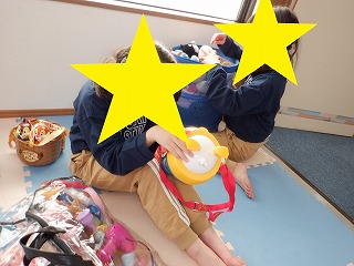 自由遊びの時間ではバランスボール、ジグソーパズル、ぬいぐるみ、ルービックキューブで遊びました。