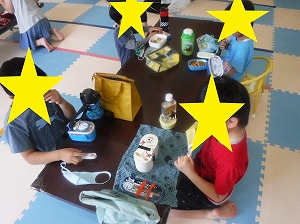 いっぱい動いてお腹が空いたね(*_*)みんなでお昼ご飯にしましょう!