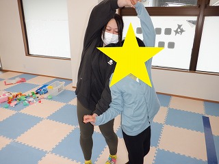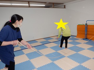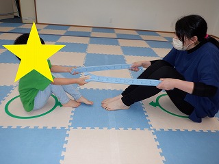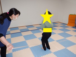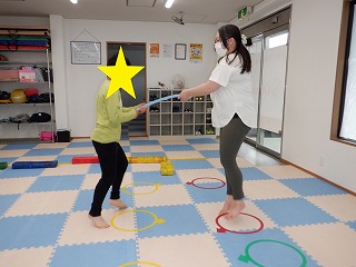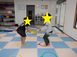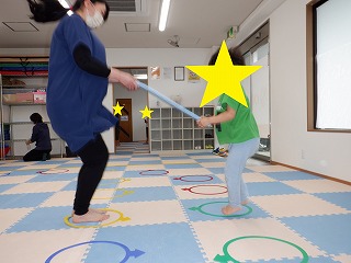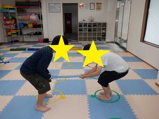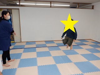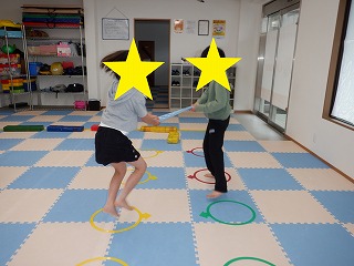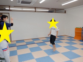 2人で横ジャンプではお友達を息を合わせて横向きでジャンプします。