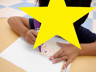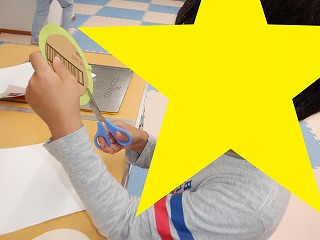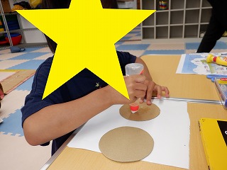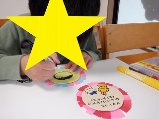 「母の日のメダル」作りはハサミや糊を上手に使ってママのお顔を丁寧に描きあげました。とっても上手に作る事が出来ていました♪