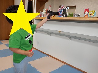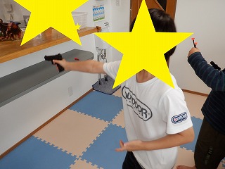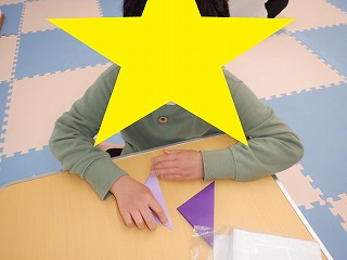 折り紙で手裏剣を作って的を当てる遊びも行いました。
