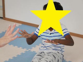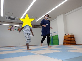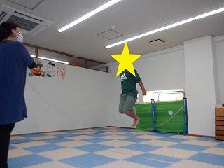 しりとりの他にも色を答えたり、「考えながら答えて跳ぶ」と2つのことを同時に行う訓練をしました。